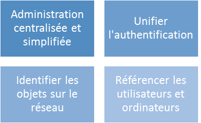 C'est une solution propriétaire Microsoft. Cela permet de centraliser les identités, objets et les accès aux ressources d'une organisation (ordinateurs, imprimantes, partage de fichiers...).